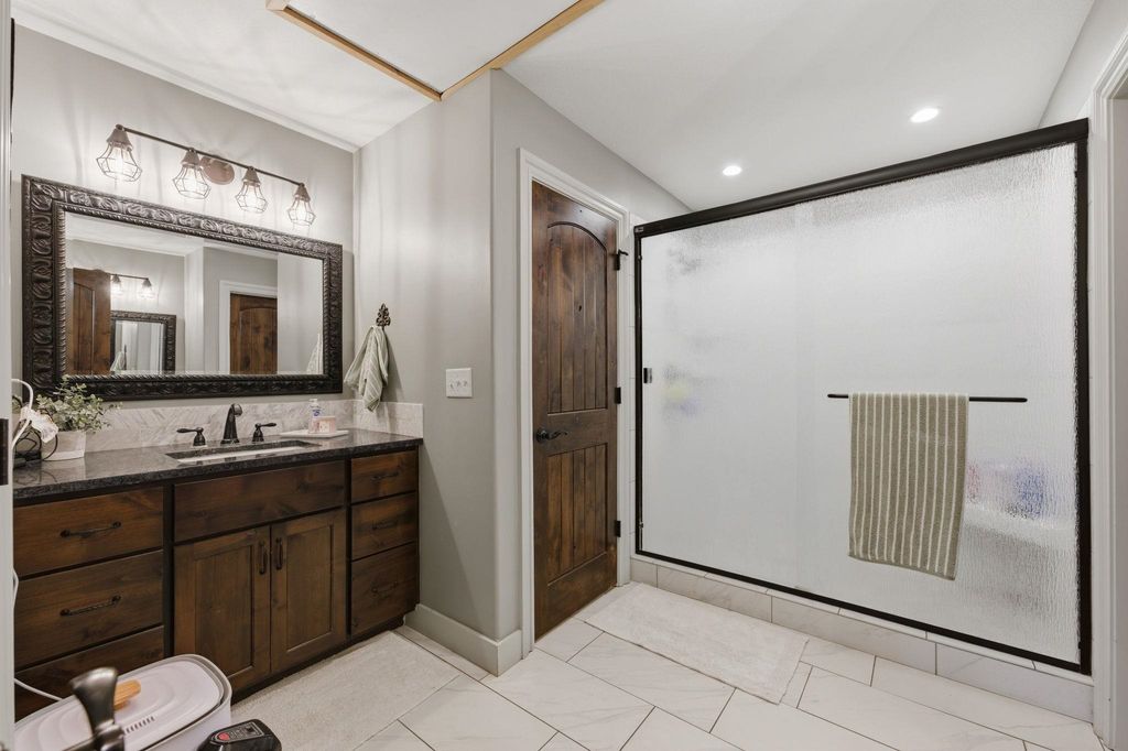Charming property that combines comfort, character, and convenient living in a friendly small-town community. As you step inside this 4 bedroom, 3 bath home, you'll find a warm and inviting interior filled with natural light thoughtful layout and plenty of room for a growing family. This home has so many updates. Remodeled kitchen, bathrooms, lighting and flooring. This provides comfort of moving in and not having to mess with updates. The living spaces are perfect for everyday living and entertaining, with a layout that flows easily from room to room. The kitchen has plenty of space for cooking and gathering. The master suite features a lovely ensuite with a walk in shower and dual vanities. The other bedrooms are on the opposite end of the house and one of those has an ensuite. The detached garage offers plenty of room for two vehicles plus storage. The backyard is spacious along with a cozy patio area. Don't miss this one!