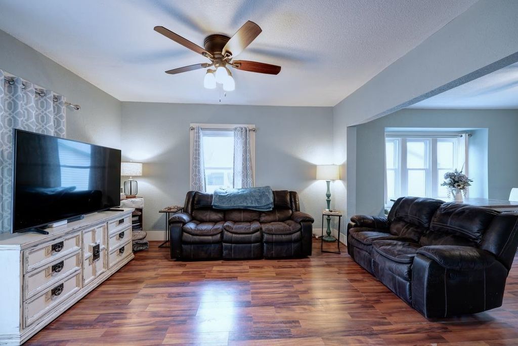 Very well maintained 3 bedroom bungalow with detached oversized 1-1.5 car garage near Lion's club park. Many items in this home are new or have been updated. Kitchen was updated 3 years ago. Newer laminate flooring. Champion windows are less than 10 years old. New hotwater tank, concrete pad in back yard that is under carport is new, new components in furnace with 8 years remaining on the warranty, new floor on front porch, and freshly painted interior as well as all the the wooden trip on the exterior.